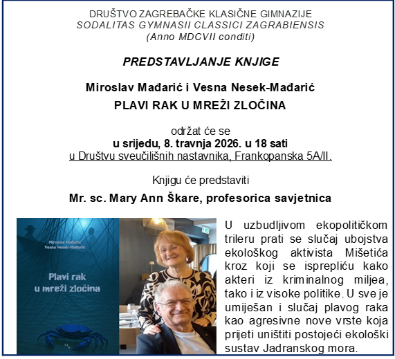 Predstavljanje će se održati u srijedu, 8. travnja 2026. u 18 sati u Društvu sveučilišnih nastavnika, Frankopanska ul. 5A/II.